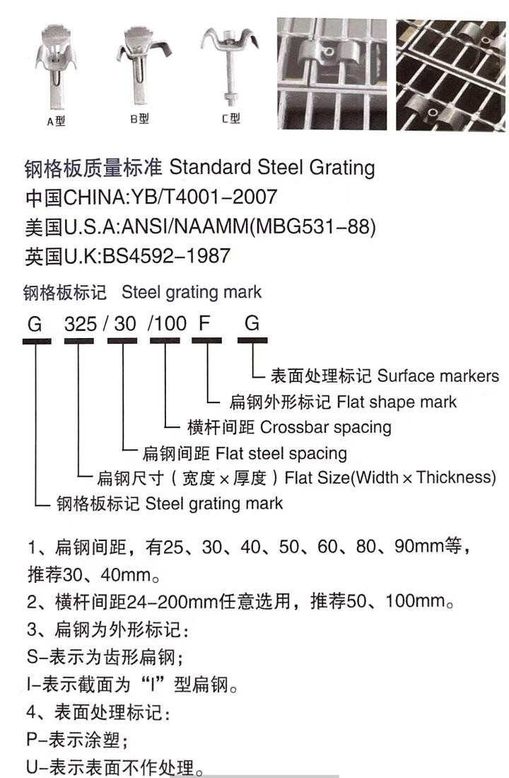 平臺(tái)鋼格板又稱為“熱鍍鋅鋼格板平臺(tái)”,它是一種應(yīng)用十分廣泛的鋼格板產(chǎn)品,此種鋼格板在工業(yè)各領(lǐng)域用途廣泛的,對(duì)表面沖擊具有強(qiáng)的抵抗力。平臺(tái)鋼格板廣泛用于工廠、車間、礦業(yè)、港口、倉庫建設(shè)的各類平臺(tái)都可選用、美觀氣派,安裝方便,是一種更 新?lián)Q代的新型建筑產(chǎn)品。